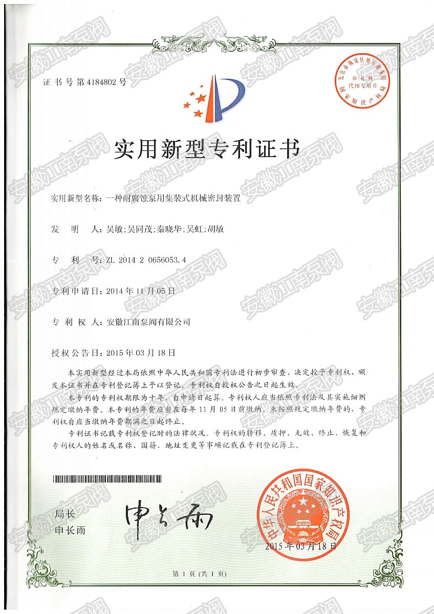 安徽江南泵閥有限公司榮獲新型耐腐蝕泵集裝式機械密封專利,主營:氟塑料泵,不銹鋼泵,耐腐蝕化工泵,品質(zhì)卓越,行業(yè)領(lǐng)跑企業(yè),科研生產(chǎn)型企業(yè)20年鑄就行業(yè)輝煌!...